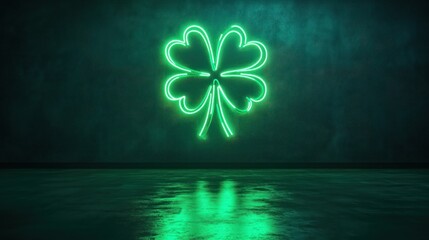Celebrate Saint Patrick's Day with a vibrant neon sign shining brightly against a dark brick wall, adding a festive touch to the atmosphere