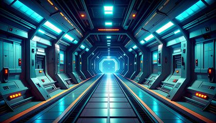 Futuristic spaceship corridor with glowing.