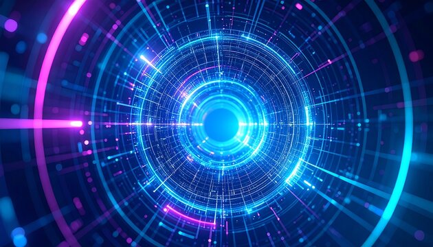 Mesmerizing abstract technology background with glowing neon lights and dynamic geometric shapes for futuristic, modern designs and innovative projects