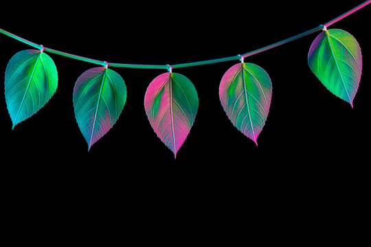 Neon vines flowing upward in a dark futuristic botanical environment with glowing purple and blue leaves and stems with glowing leaves and futuristic plants