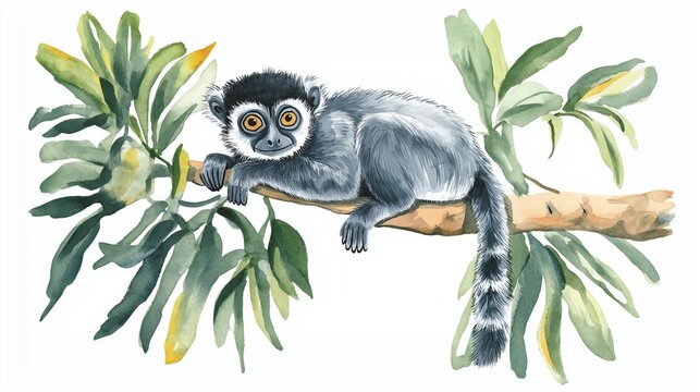 Andasibe-Mantadia NP. Andasibe-Mantadia NP hand drawn watercolor illustration on white background