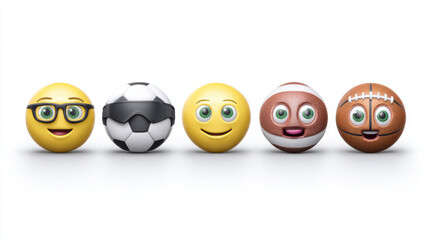 Sports Emoji Collection, Happy Faces with Soccer, Basketball, Football Details