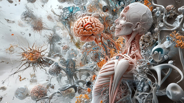 Cerebellum, Thalamus, Medulla oblongata, Spinal cord and Motor Neuron human under the microscope in Lab.