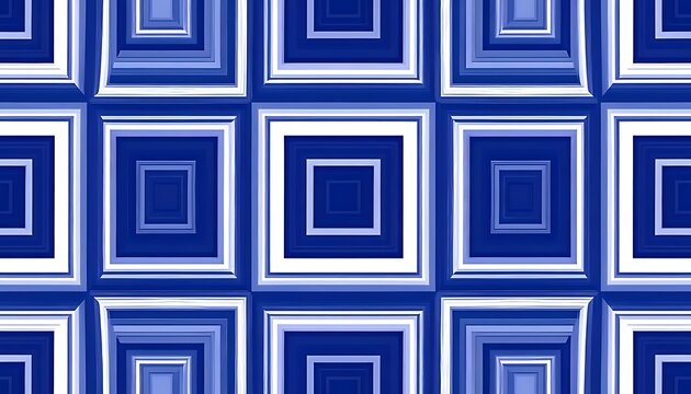Abstract geometric pattern of nested squares in shades of blue and white.