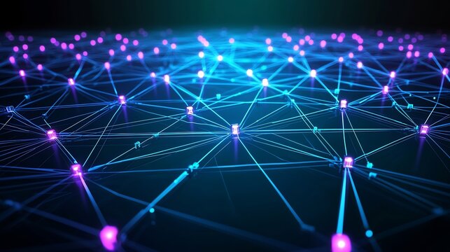 Futuristic digital network with neon highlights