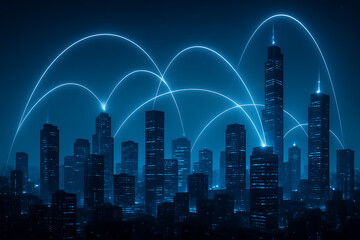 Futuristic digital interface with pulsing dotted waves and arc connectors