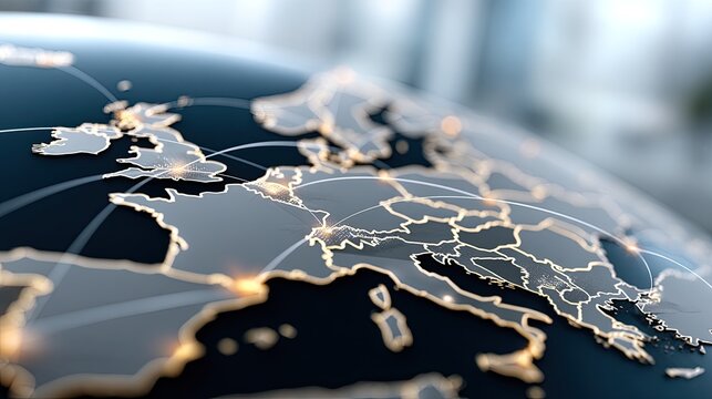 A detailed depiction of a network map illustrating data flows and connections across Europe, showcasing internet communication