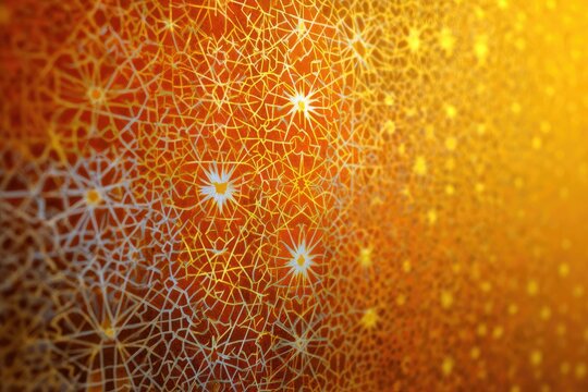 Abstract pattern of interconnected lines and points, over a warm orange gradient