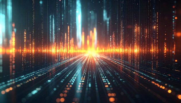 Digital Pathways: Illuminated data streams surge through a futuristic digital landscape, representing the intricate flow of information and technology.