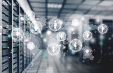 High angle shot of system administrator setting up server network in data center lit by neon light, Generative AI