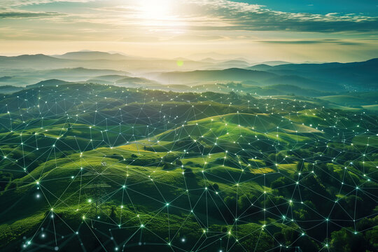 Futuristic 5g network analytics with neon line graph overlay