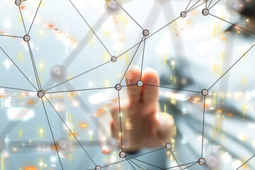 Glowing digital connectivity interface with network nodes overlay