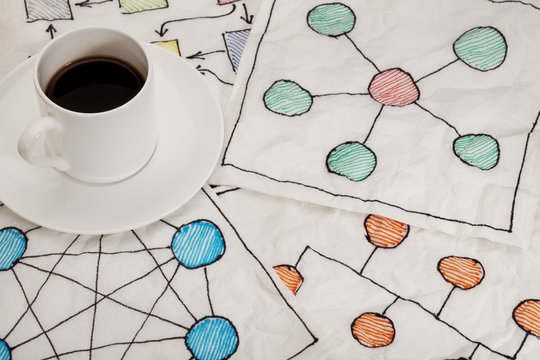 Elements, entities being linked. Concept of new values and technology forming a new society and a diverse flow.