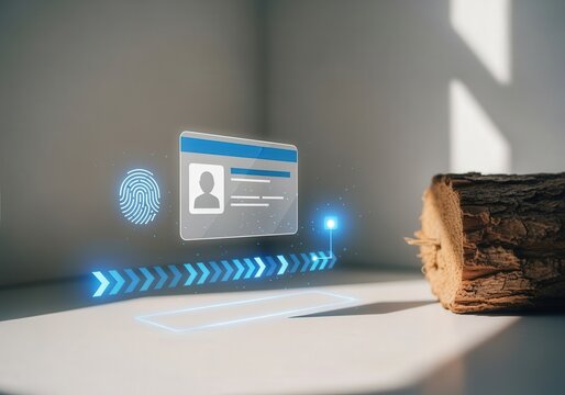 Digital identity concept with holographic interface and natural textures
