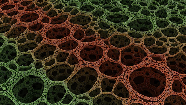 Vibrant abstract layers over fluctuating green background