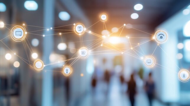 AI-powered business intelligence display, cutting-edge data visualization with glowing UI elements