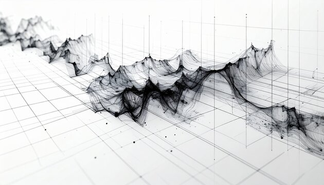 Abstract grayscale mountain range with digital network (1)