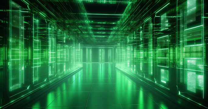 Monitor display showcasing data center servers, illustrating technology, digital infrastructure, and network operations, symbolizing innovation and connectivity