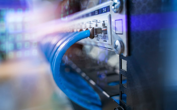 ethernet cable on network switches background