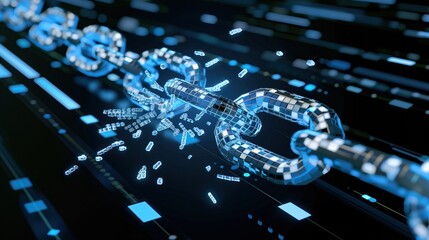 digital block chain breaks apart vulnerability cyber security technology background