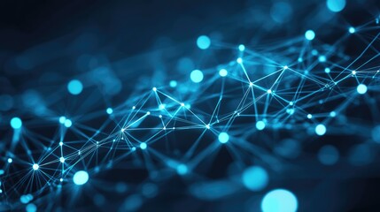 Abstract Network of Connected Lines and Nodes in Blue Tones.