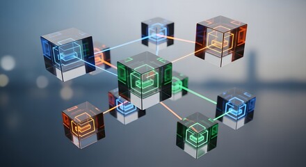 A 3D visualization of interconnected glowing cubes representing blockchain technology.