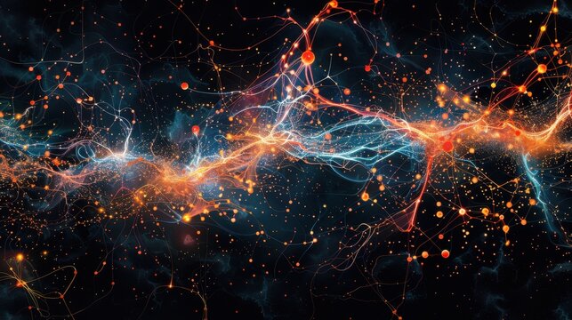 Abstract digital neural network with glowing connections
