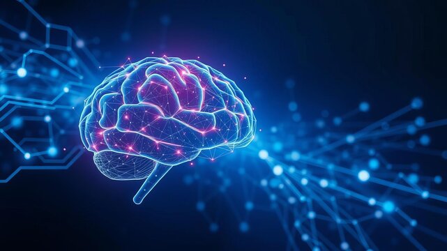 Pulsing neural network wireframe shaping brain contours futuristic hud with numeric ticks
