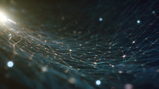 Abstract technological grid with glowing nodes and lines representing data flow and connectivity