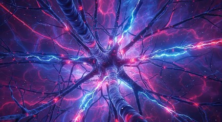 Abstract neuron-like structure with branching connections, evoking neural networks, brain activity, and intricate organic patterns for scientific or conceptual visuals