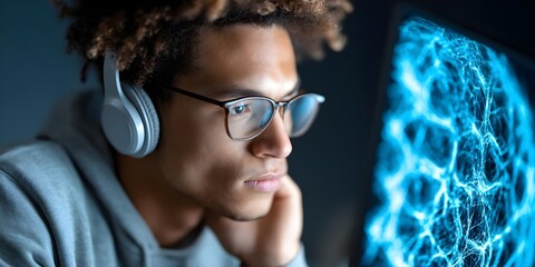 High-Resolution Digital Portrait of Cybersecurity Analyst Analyzing Neural Network Visualization