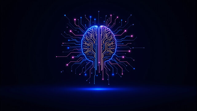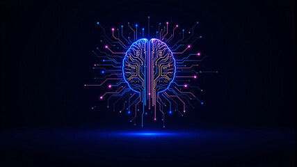Artificial Intelligence Human Brain Thinking Concept with Digital Neural Network and Futuristic Technology Visualization