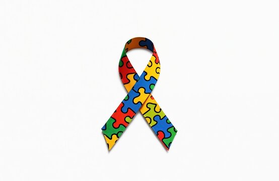 Colorful puzzle ribbon isolated on white background. Autism awareness symbol. World Autism Awareness Day concept. Support for autistic children people with neurological disorders.
