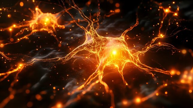 Abstract visualization of glowing neurons and neural connections