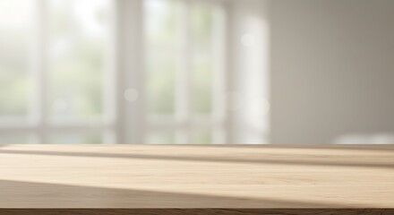 Natural wooden surface with soft shadows and texture, neutral color palette, background for product display