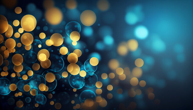 abstract background with bokeh lights, Blue and gold Abstract background and bokeh on New Year's Eve background, Ai generated image