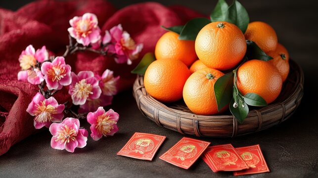Cozy bright home interior with chinese new year decorations in kitchen.