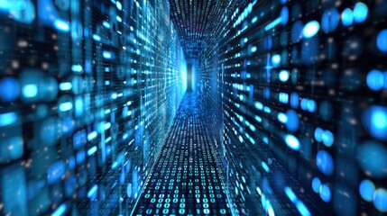 Futuristic 6g network in a data hub with circuit lines and server racks