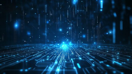 Immersive digital network with glowing blue circuits, a captivating background for tech innovation and next generation connectivity projects