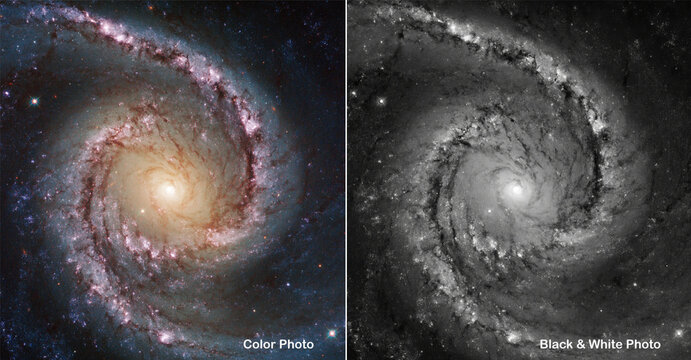 Color and Black & White side by side comparisons. Galaxy NCG 1566. Elements of this picture furnished by NASA