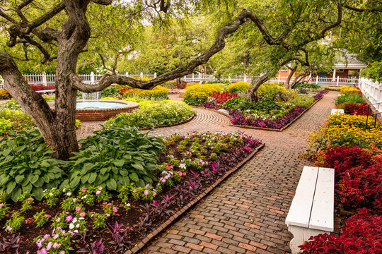 Portsmouth historic downtown aerial view at Market Square with historic buildings and North Church on Congress Street in city of Portsmouth, New Hampshire NH, USA.
