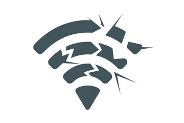 Dark grey broken wifi symbol no internet isolated on a transparent background