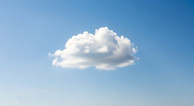 A single fluffy white cloud floating in a clear blue sky during daytime with no visible landmarks or other objects