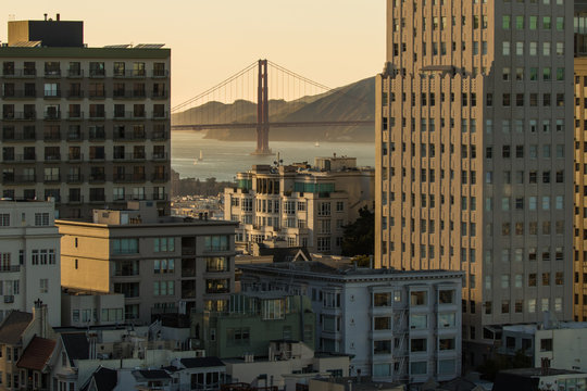 Sunrise view of Golden Gate Bridge from Nob Hill