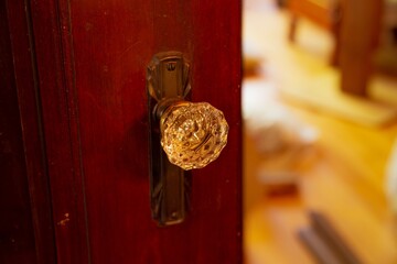 Closeup shot of women cleaning a door nob with a bloth using cleaning liquid