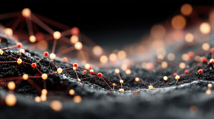 Abstract image of glowing nodes and lines, creating a network effect Central bright node symbolizes connection and communication, ideal for technology or network concepts