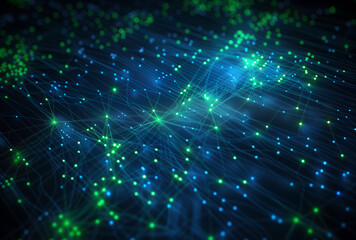 Futuristic network graph with green nodes and lines technology