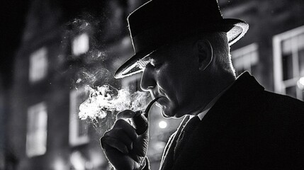 Shrouded in Shadows: A mysterious figure in a fedora, evoking a classic film noir ambiance