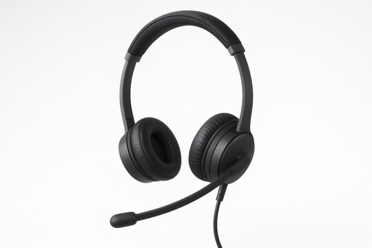 Noise-canceling headphones on clean desk, soft light, strong negative space.