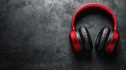 Red headphones on dark background.
